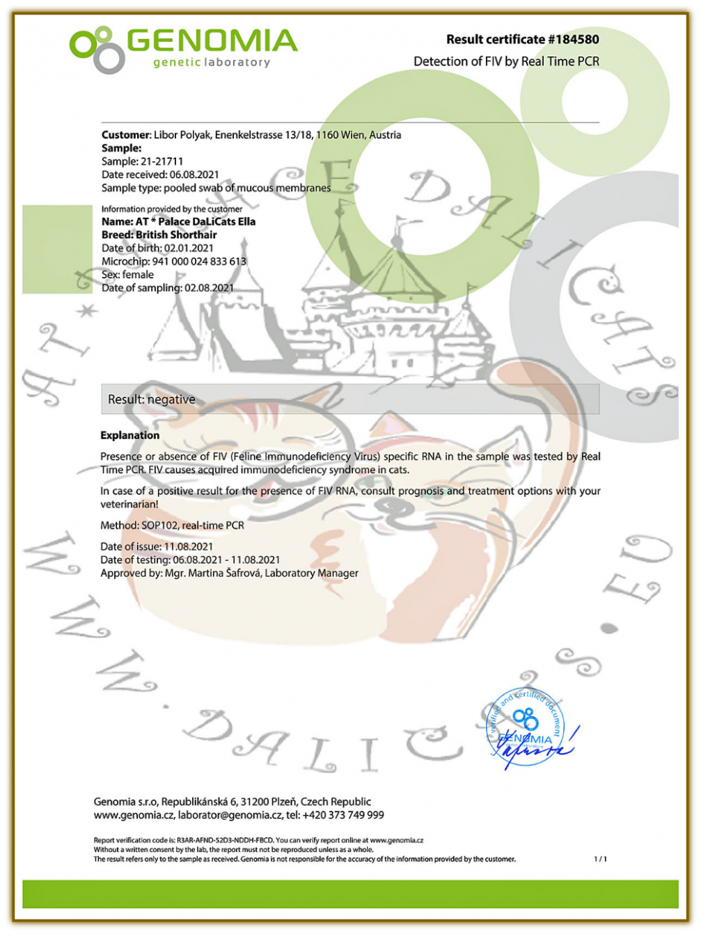 FIV - (Feline Immundefizienz - Virus) - NEGATIV (06.08.2021)