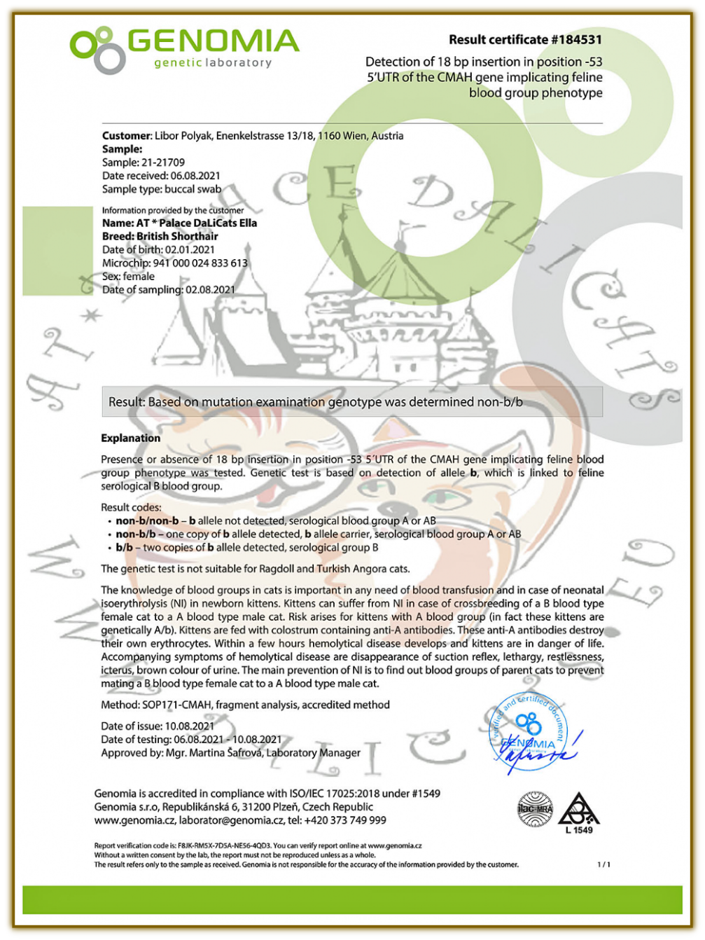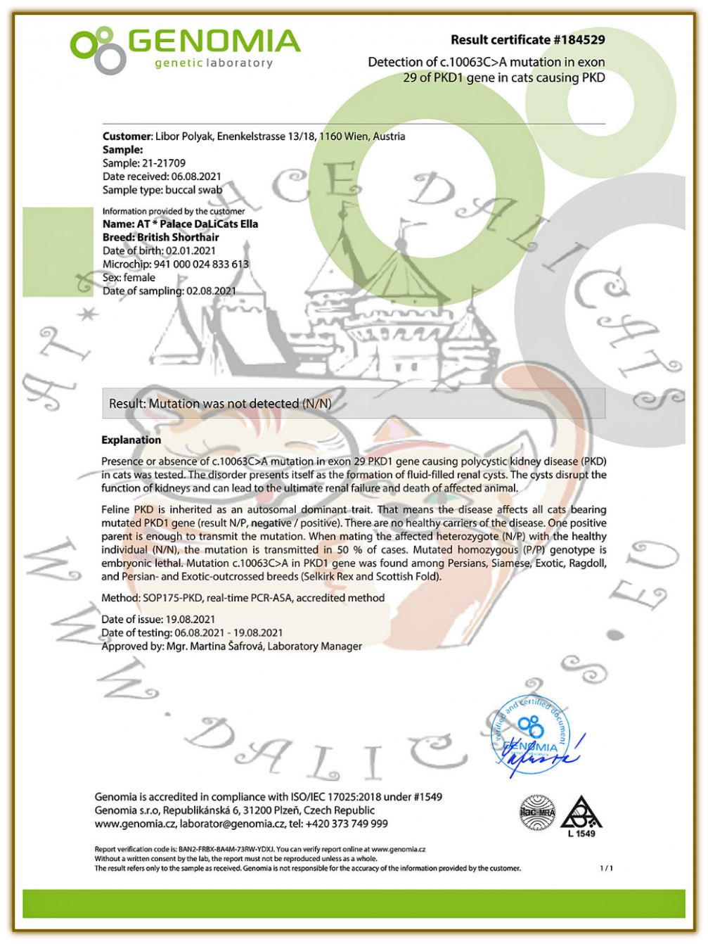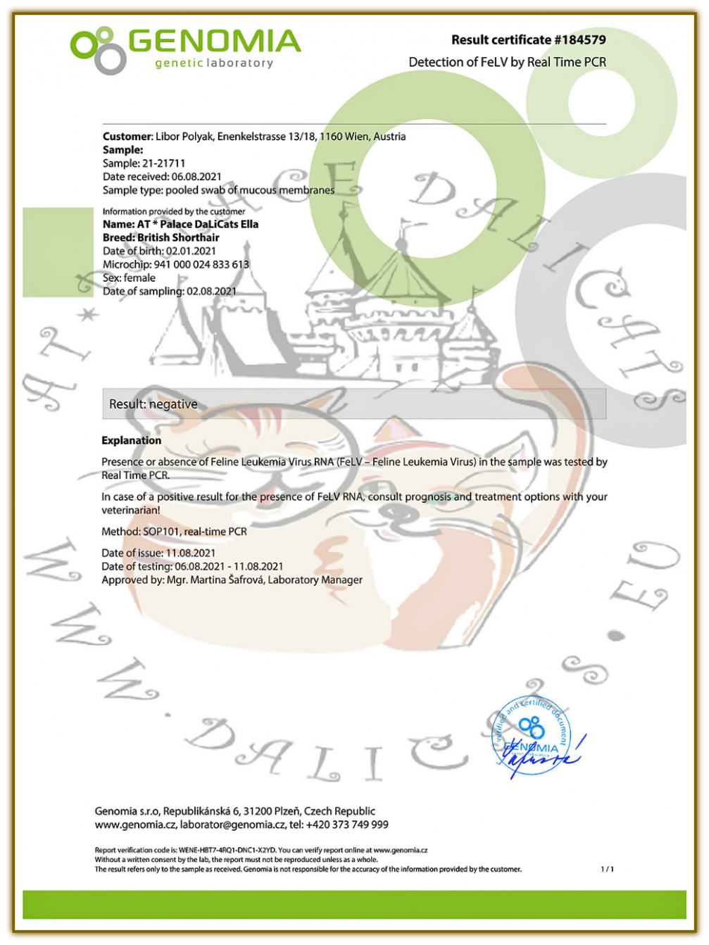 FeLV - (Katzenleukose) - NEGATIV (06.08.2021)